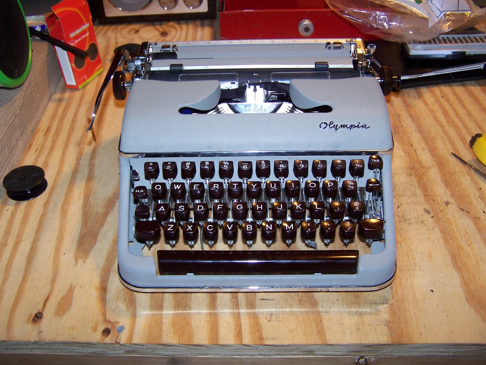 About a year ago I stumbled upon a rather plain looking Olympia SM5 typewriter. I love the Olympia SM machines. The early models epitomize the style of the 50s with smooth lines and plenty of chrome. This one was a 1964 model. The chrome was all there, but years of neglect had dulled its shine. The paint, originally a glossy cream color but had become yellowed with several decades worth of nicotine. I cleaned it up as best as I could, but even so, it would never a prizewinner.